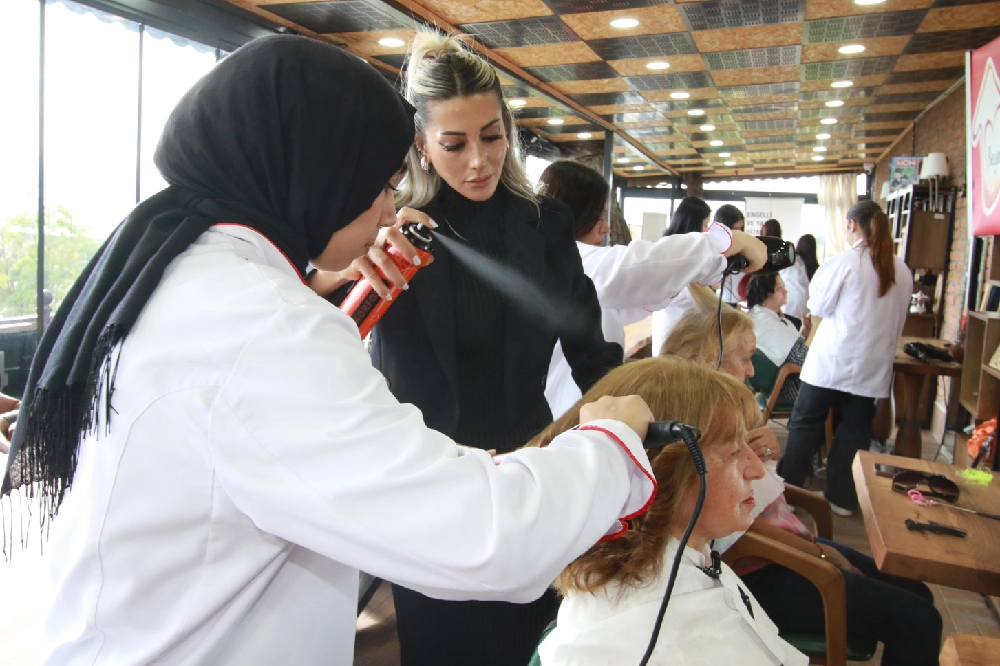 KOCAELİ (İGFA) - Beyaz Kalpler Eğitim ve Gelişim Merkezi’nde Kuaförlük ve Güzellik Uzmanlığı Atölyesi’nde eğitim gören öğrenciler, Saygınlar Kulübü üyelerinin kişisel bakımlarını yerine getirdi.